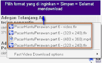 6. Sekarang lihat pada sisi pojok kanan di bawah browser anda, arahkan mouse ke sana lalu klik Icon FVD untuk mendownload video yang tadi di streaming
